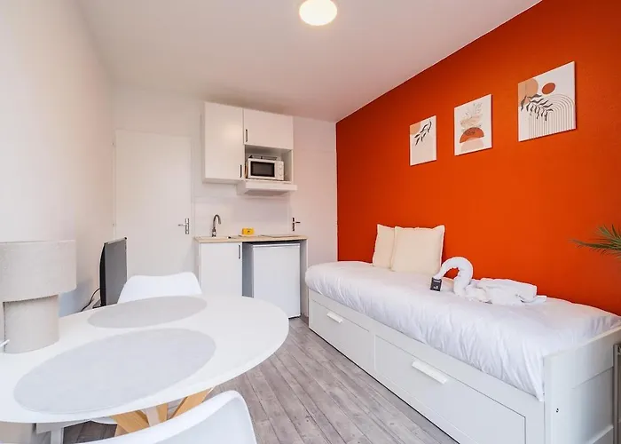 Le logement comprend une cuisine avec un réfrigérateur et une table de cuisson. L'aéroport de Toulouse-Blagnac est à une distance de 15 minutes en voiture, et l'arrêt de bus Avenue de Rangueil est à 300 mètres de Studio Renove Cosy.